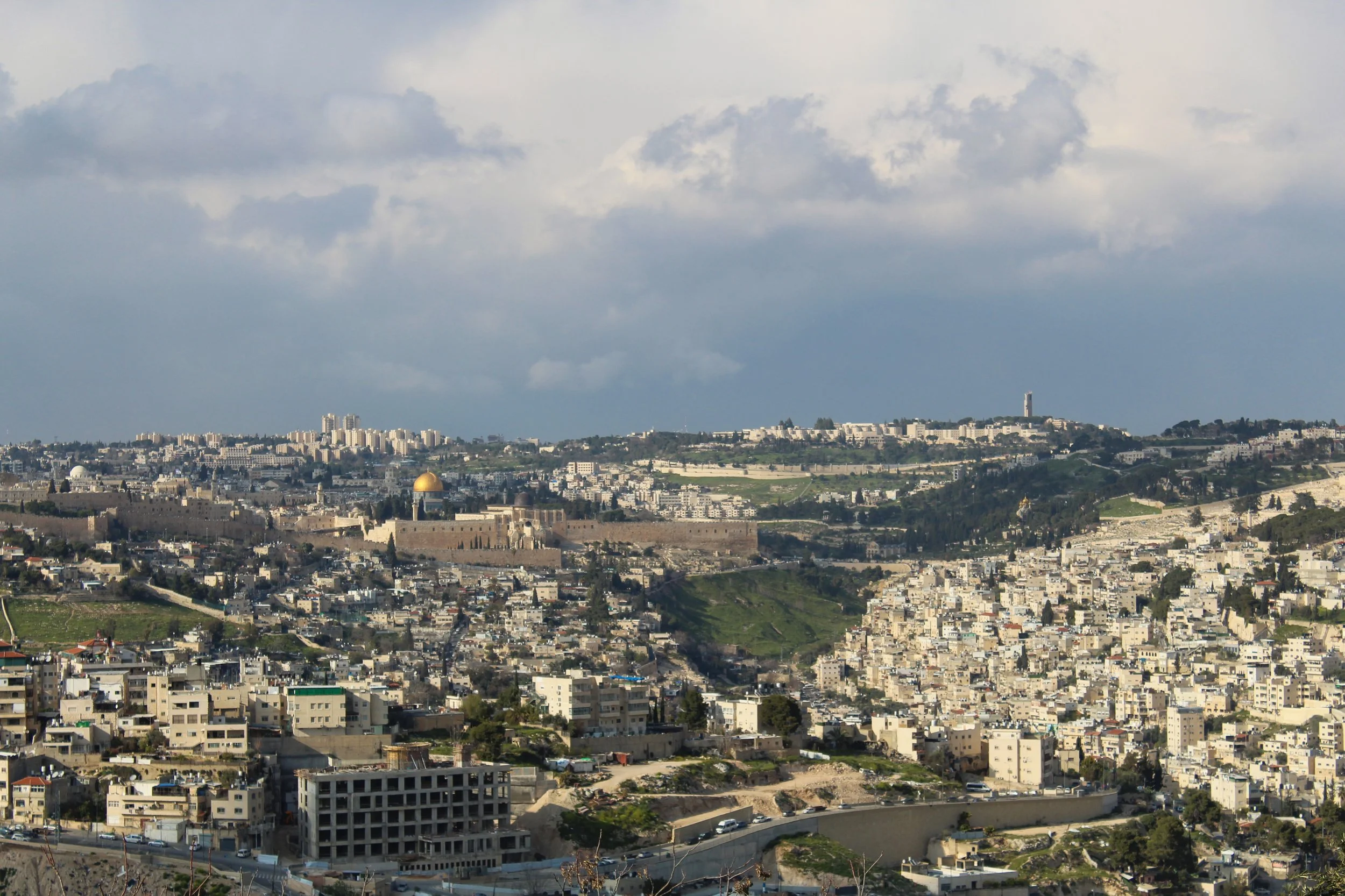 The Hinnom Valley below joins the Kidron and Tyropoeon valleys that merge to form the majority of Jerusalem’s landscape. Together, they converge to form the shape of the Hebrew letter shin or ש, the first letter of Shaddai, one of the names of God. This is seen as a fulfillment of Deuteronomy 16:2, where God instructs His people to celebrate Pesach (Passover) at “the place where the Lord chooses to put His name” and Deuteronomy 12:5, which tells Israel to “seek the place where the Lord your God chooses...to put His name for His dwelling place.”